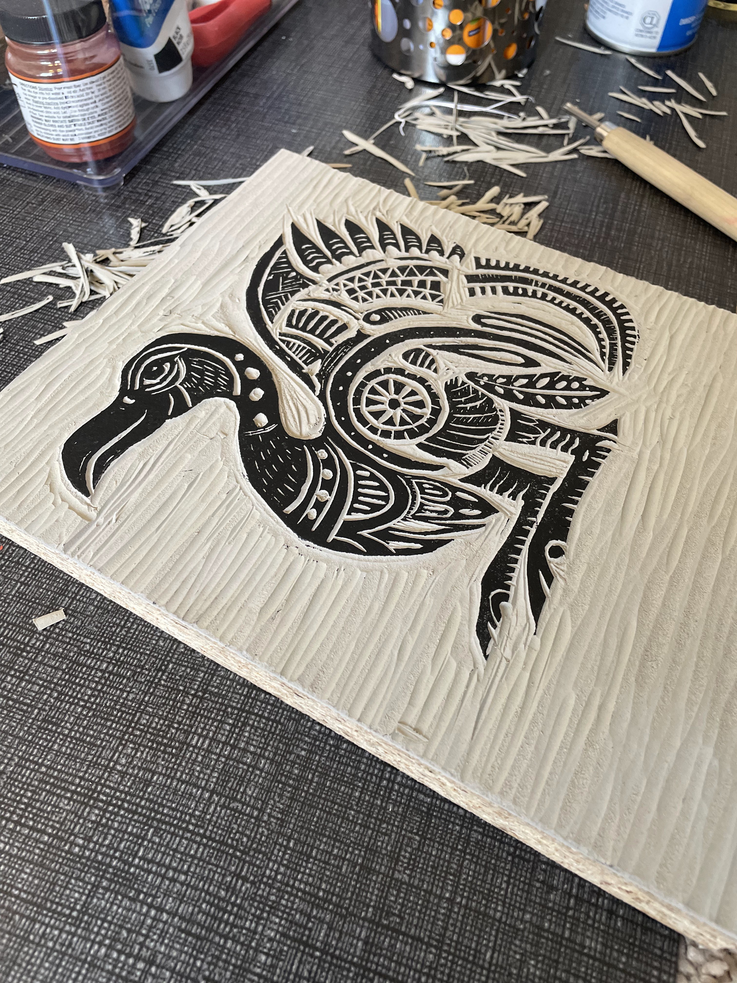 Each piece was hand-carved and hand-printed. Linocut was a new medium for our studio at the time—one were drawn to for its physicality, irreversibility, and constraint-driven precision—and we learned the technique through direct experimentation.
